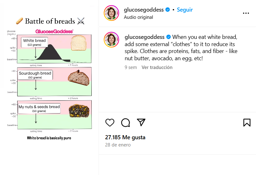 Jessie is committed to making people’s life easier through her knowledge on chemistry. Back in 2020, while the pandemic was changing the world, we were translating the Glucose Goddess’ posts. Via Instagram, Jessie shared scientific data that everyone could understand while helping create a healthier life through her methods.